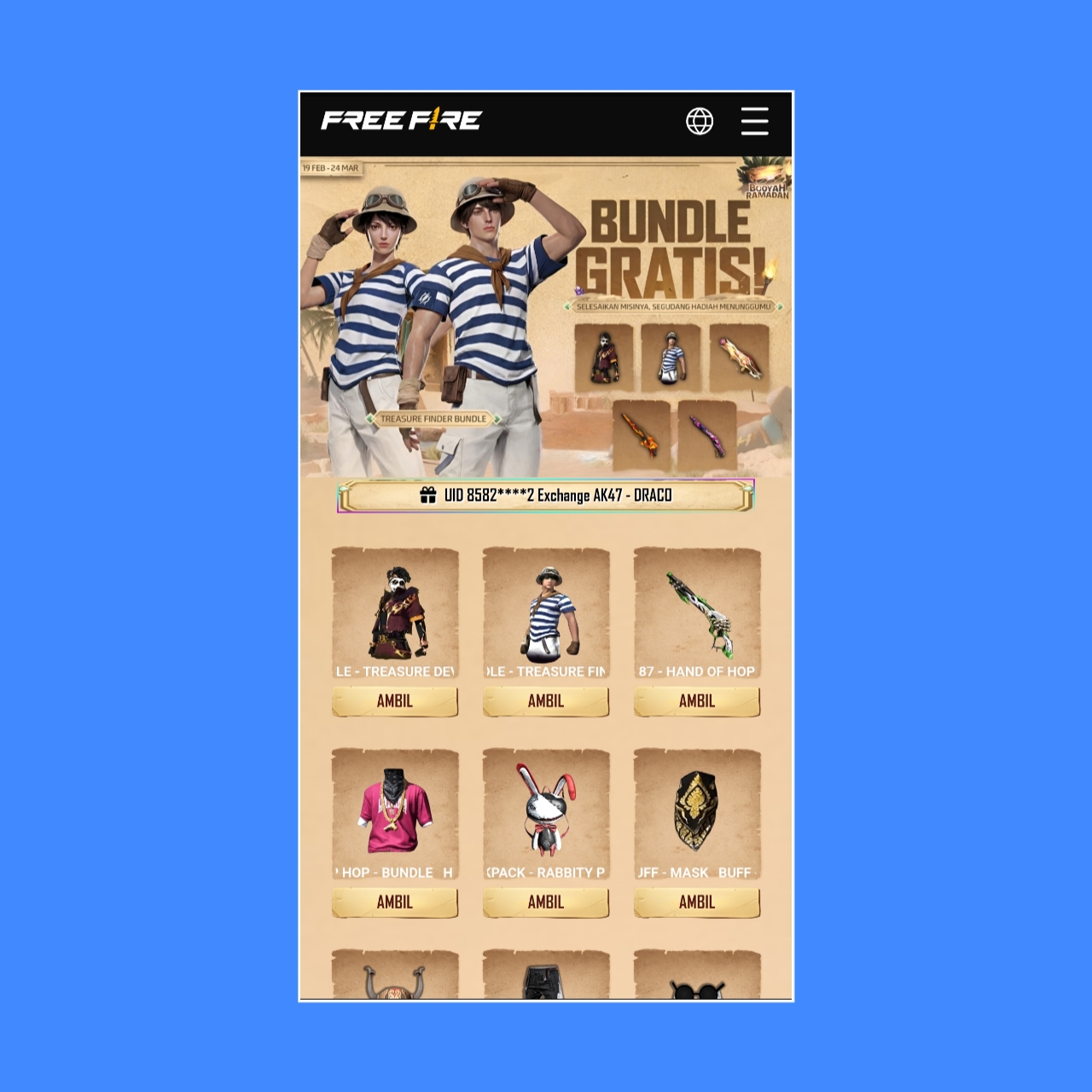 Berbagi Akun Mabar FF FB+GP