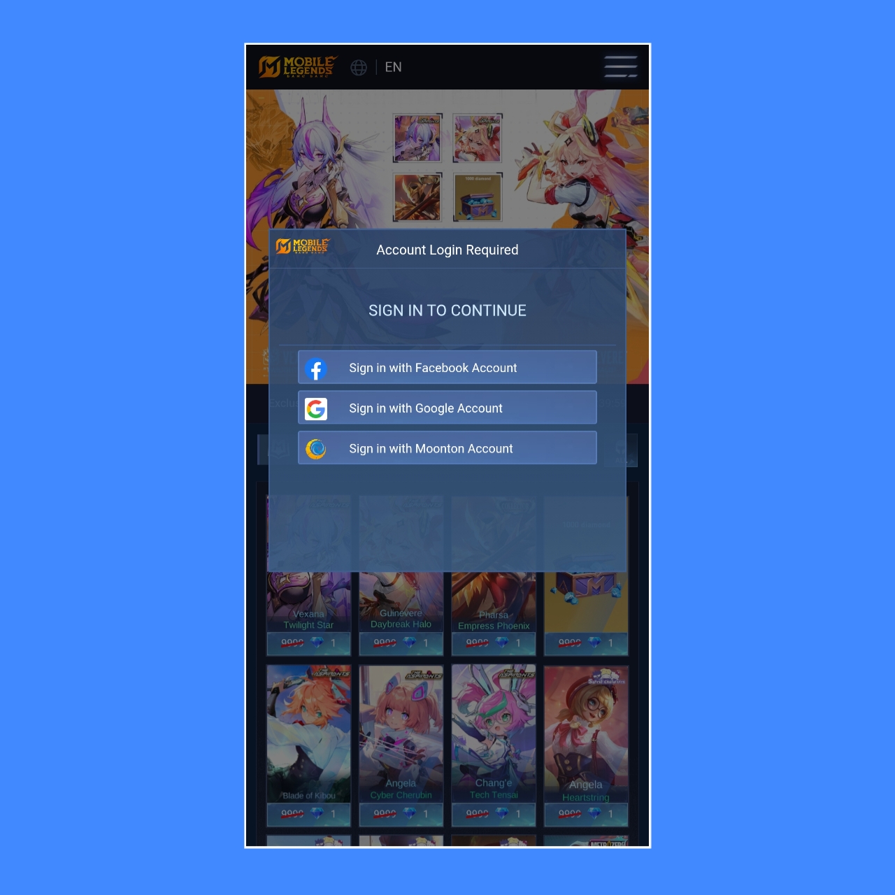 • Login Facebook & Google & Moonton ( Request )